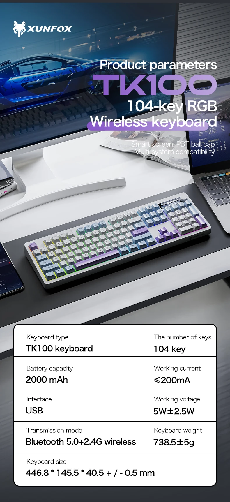 Clavier Xunfox TK100 Bluetooth RGB jeu bureau