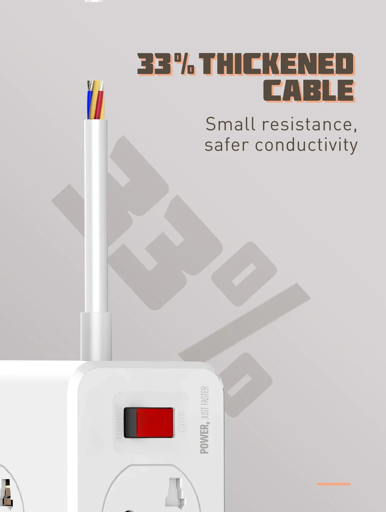 * Le cordon d’alimentation robuste de 2M peut fournir une puissance optimale aux appareils connectés. Aide simultanément à protéger plusieurs appareils électroniques tout en pouvant accueillir de grands adaptateurs.