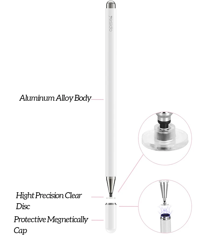 Stylo capacitif Yesido ST03 avec contacts sensibles, anti-erreur et capuchon magnétique.