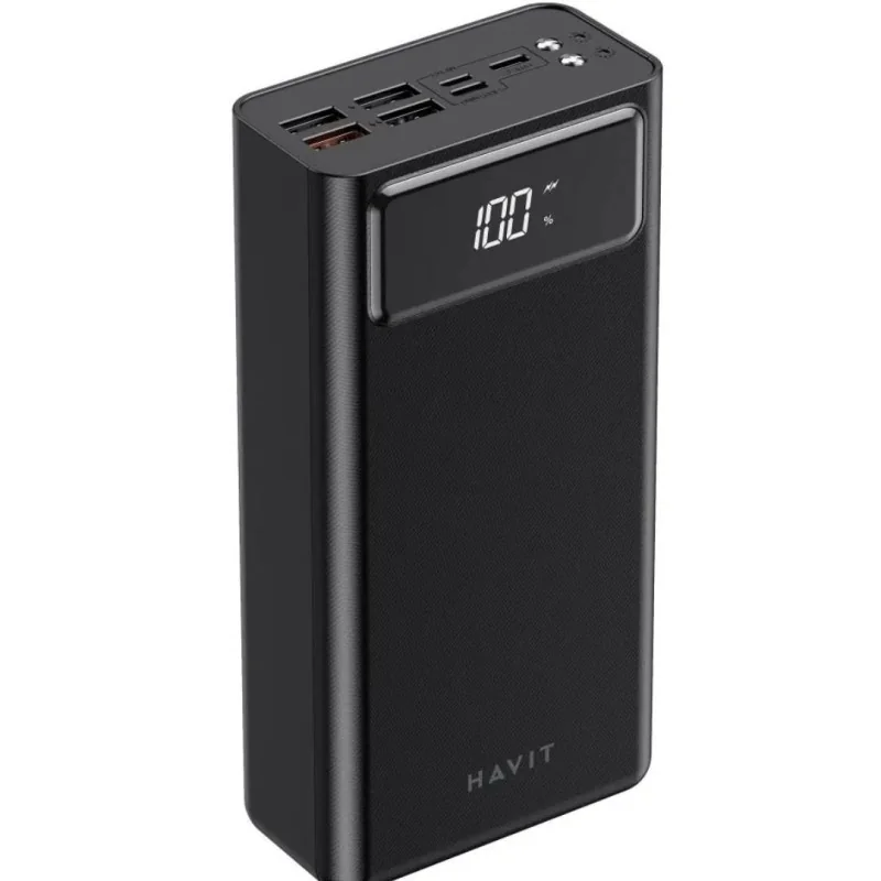 Power Bank Havit PB56 – 40000mAh QC+PD, 4 Ports USB, Lampe Torche LED Intégrée, Design Compact et Durable