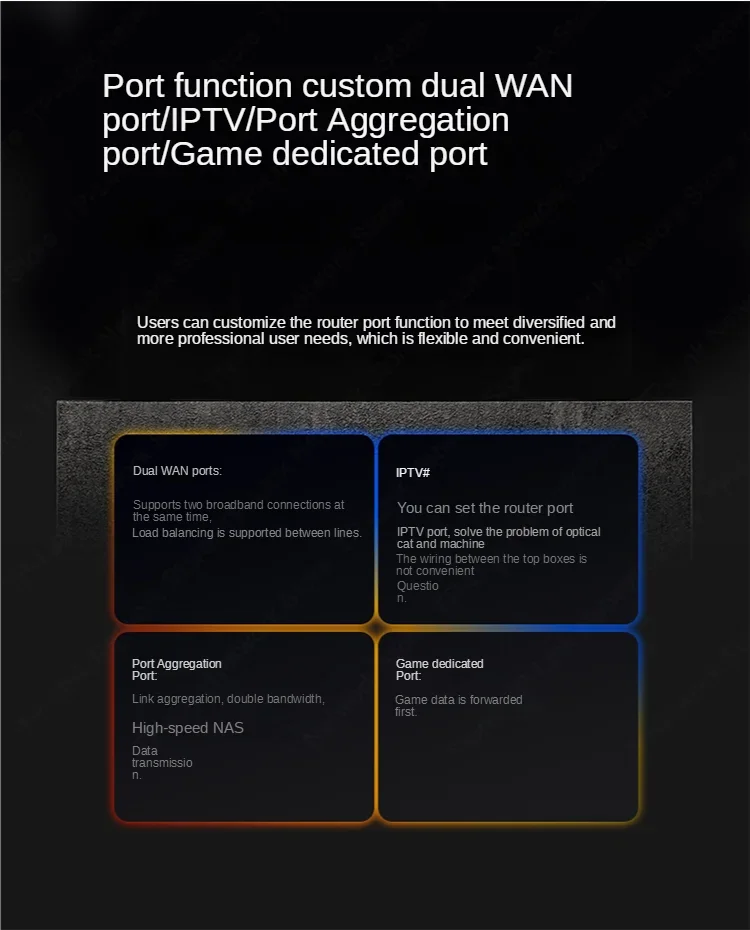 > Ethernet port 4 10/100/1000Mbps rate adaptive WAN/LAN adaptive ports