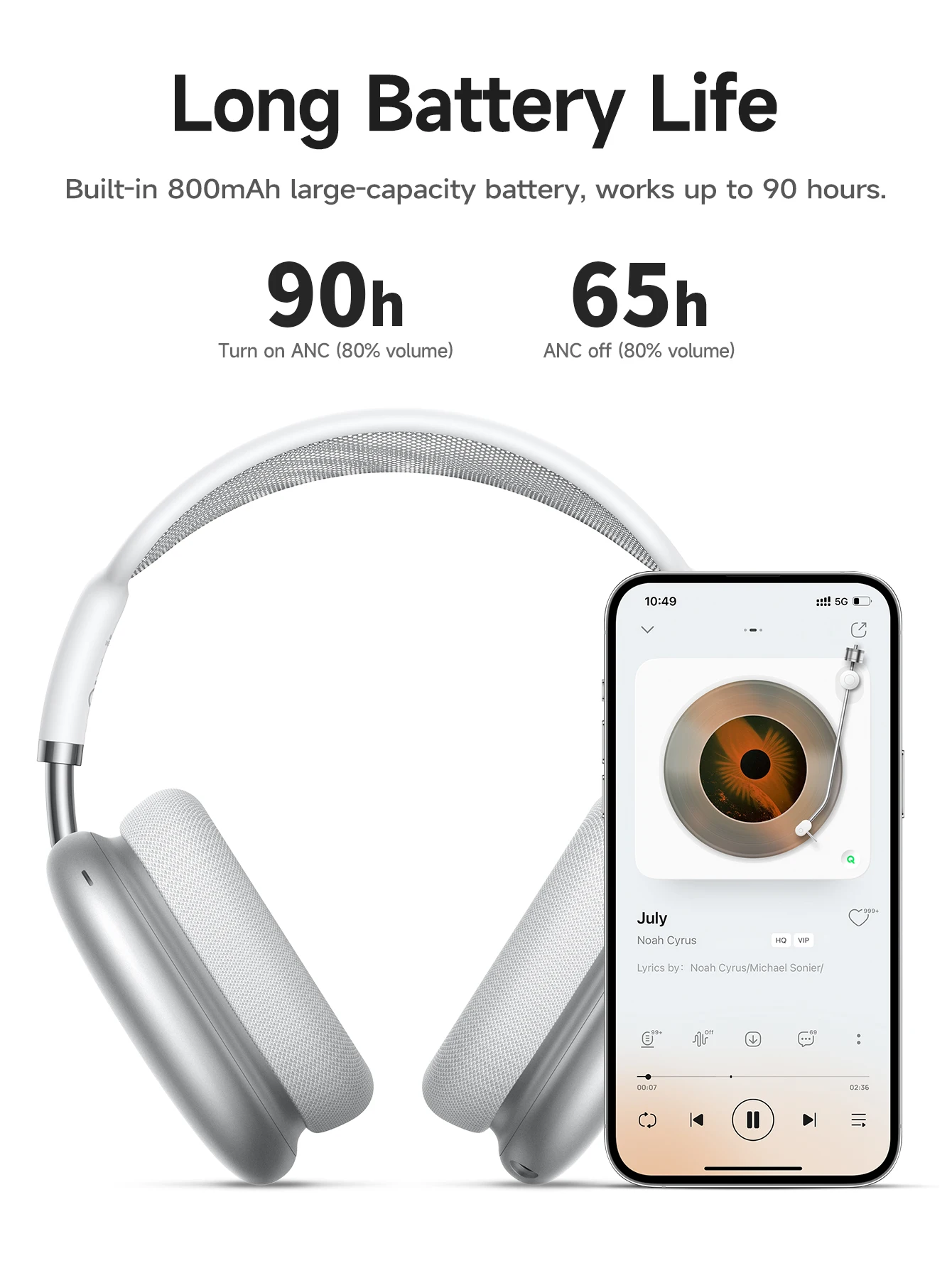 3.Temps d’utilisation : 90 heures (65 heures avec ANC activé)