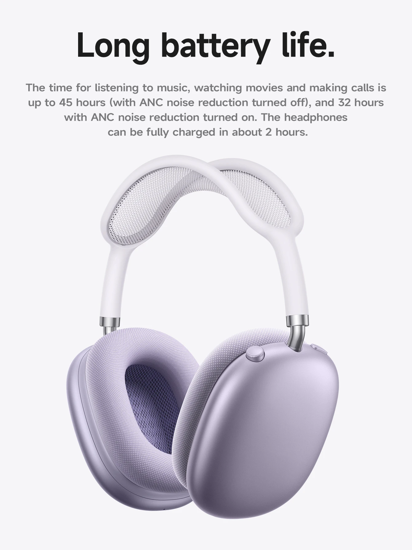 • 3.Durée d’utilisation : 45 heures (32 heures en mode ANC)
