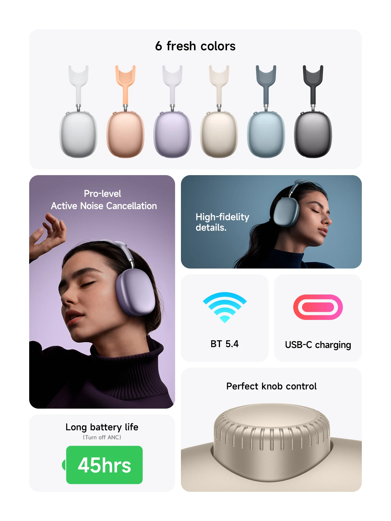 HOCO W65 Plus AirPods Max ANC casque Bluetooth supra-auriculaire Hifi avec oreillettes magnétiques