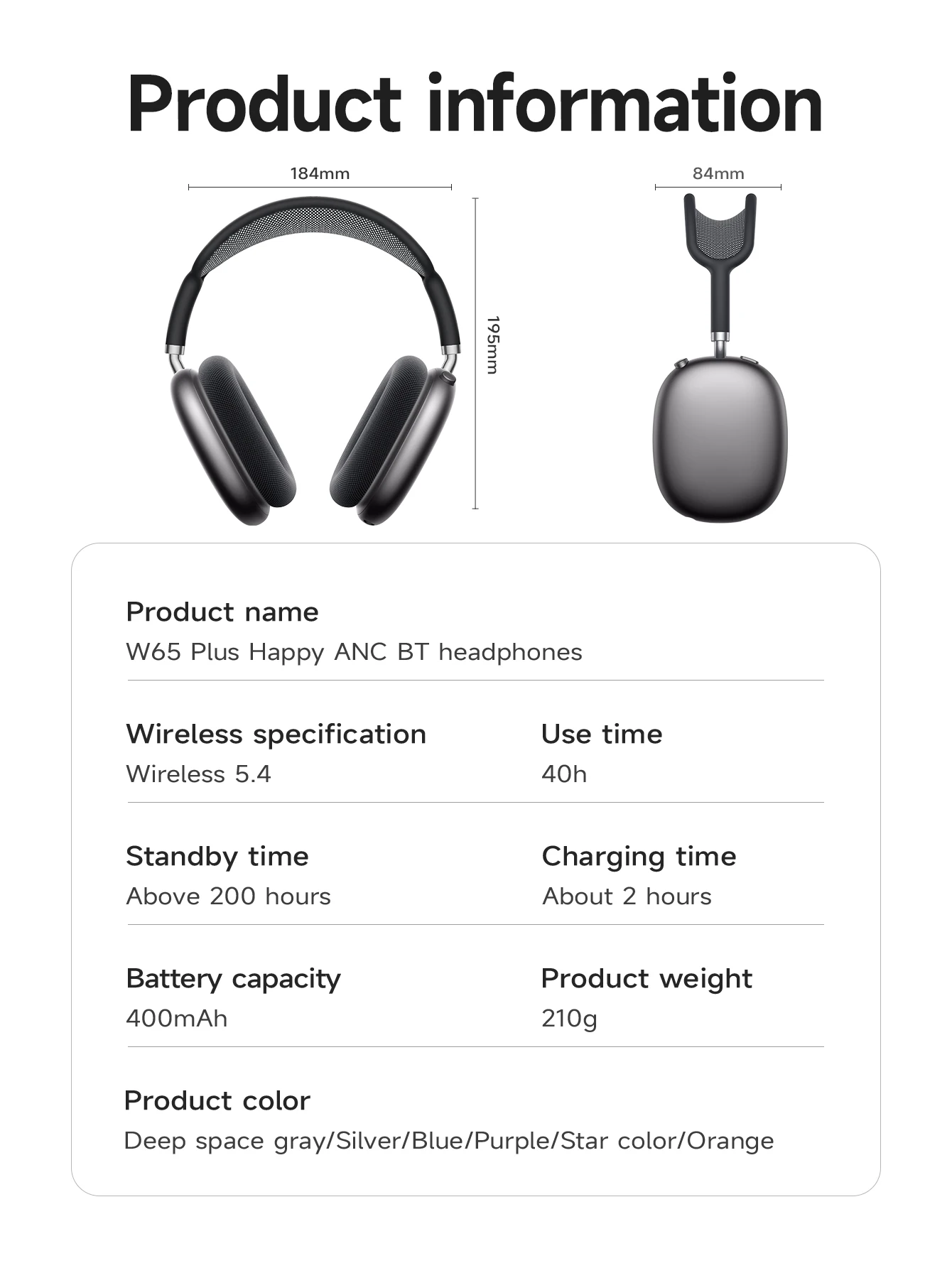 • Casque W65 Plus Happy ANC BT