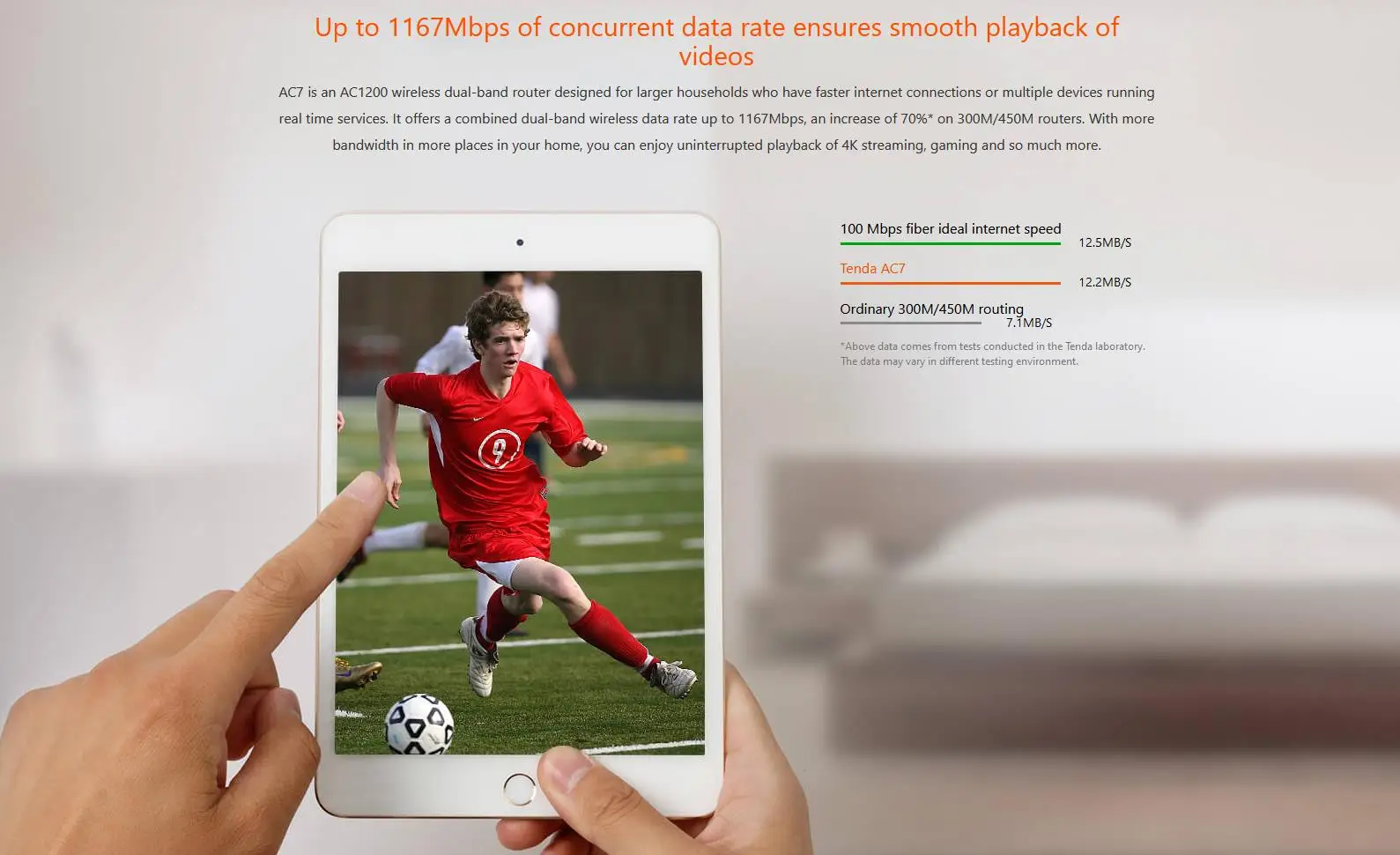 Sa simultanéité double bande de 2.4GHz et 5GHz permet des vitesses de connexion sans fil allant jusqu’à 1167Mbps, ce qui est 70% plus rapide que les routeurs de 300M / 450M.