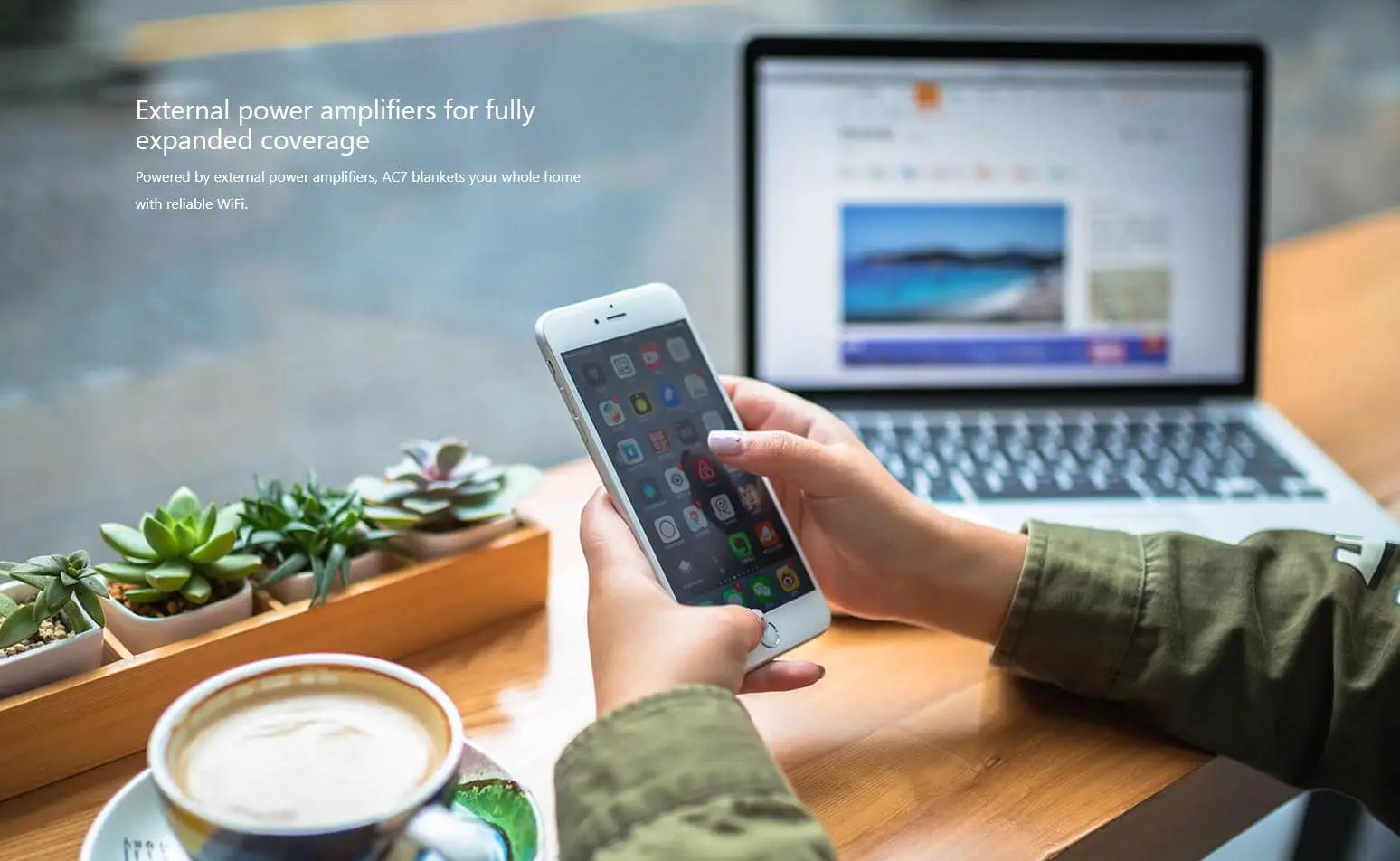 AC7 est un routeur sans fil double bande puissant et stable conçu pour les utilisateurs de grande taille et multi-pièces, équipé d’un module indépendant d’amélioration du signal, Beamforming + technologie intelligente d’amélioration du signal, et une antenne externe à gain élevé de 5 * 6dBi.
