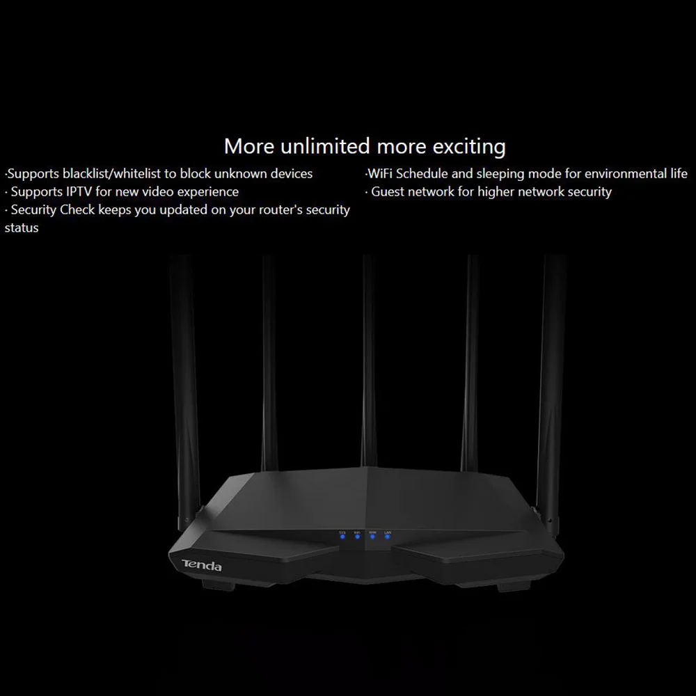 Routeurs wifi Tenda AC7 11AC 2.4Ghz/5.0Ghz répéteur Wi-fi 1 * WAN + 3 * LAN 5 * 6dbi antennes à gain élevé application intelligente gérer le micrologiciel chinois